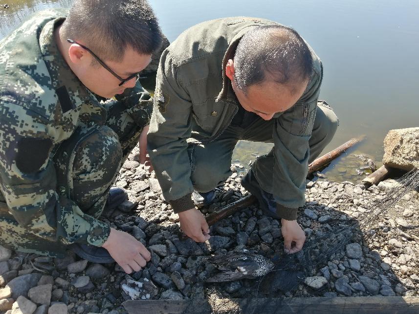 圖強(qiáng)林業(yè)局森林資源管理科工作人員在壯林林場施業(yè)區(qū)檢查工作時(shí),發(fā)現(xiàn)一只綠翅鴨被粘網(wǎng)粘住,資源科工作人員對(duì)其展開營救。