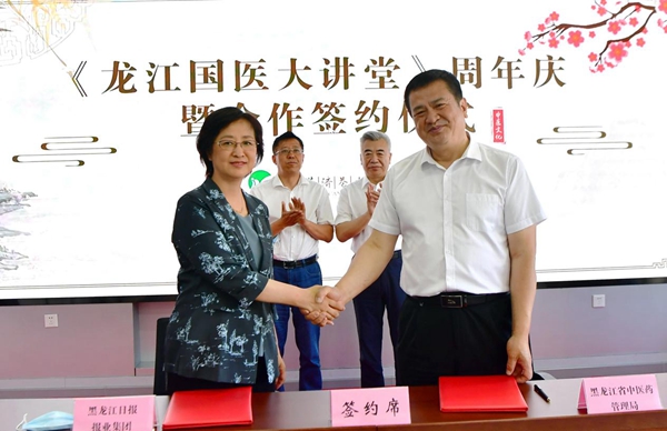 活動(dòng)現(xiàn)場(chǎng),黑龍江日?qǐng)?bào)報(bào)業(yè)集團(tuán)分別與黑龍江省中醫(yī)藥管理局、黑龍江省中醫(yī)藥科學(xué)院進(jìn)行了合作簽約。省中醫(yī)藥管理局黨組書記、局長(zhǎng)張曉峰說:黑龍江日?qǐng)?bào)報(bào)業(yè)集團(tuán)具有廣泛的社會(huì)影響力,我們將以框架協(xié)議的簽署為契機(jī),在中醫(yī)藥文化知識(shí)宣傳普及、中醫(yī)藥產(chǎn)業(yè)宣傳推介方面進(jìn)一步加深合作。省中醫(yī)藥科學(xué)院黨委書記、院長(zhǎng)陳宏在現(xiàn)場(chǎng)說:《龍江國醫(yī)大講堂》已成為我省中醫(yī)藥文化宣傳戰(zhàn)線上的知名品牌,我們將在多領(lǐng)域開展更深層次、更高水平的合作,為我省中醫(yī)藥事業(yè)跨越式發(fā)展助推加力。