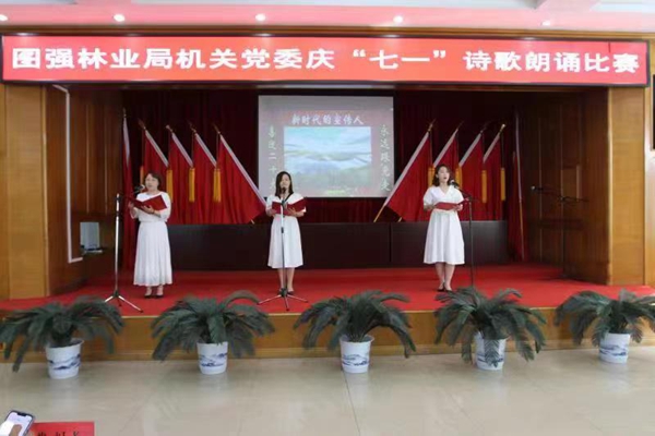 聚焦優(yōu)良作風(fēng),堅定理想信念。為全面激發(fā)機(jī)關(guān)干部開拓奮進(jìn)的使命感和責(zé)任感,機(jī)關(guān)黨委組織黨員干部開展了慶“七一”詩歌朗誦比賽,以此激勵機(jī)關(guān)干部發(fā)揚(yáng)優(yōu)良作風(fēng),緬懷黨的豐功偉績,承繼先輩英烈風(fēng)骨,堅定理想信念、不忘初心,激發(fā)廣大機(jī)關(guān)黨員干部愛國、愛黨、愛崗敬業(yè),增強(qiáng)黨性修養(yǎng),推進(jìn)機(jī)關(guān)黨員在新時代實(shí)踐中走前列、當(dāng)先鋒,為加快圖強(qiáng)林業(yè)經(jīng)濟(jì)各項事業(yè)高質(zhì)量發(fā)展添磚加瓦。詩歌朗誦大賽上,詩歌作品內(nèi)容健康,積極向上,歌頌家鄉(xiāng),歌頌黨,贊美祖國,參賽選手在詩歌朗誦中精神飽滿、感情真摯、聲情并茂,朗誦富有韻味和表現(xiàn)力,與觀眾產(chǎn)生共鳴,比賽現(xiàn)場氣氛熱烈。