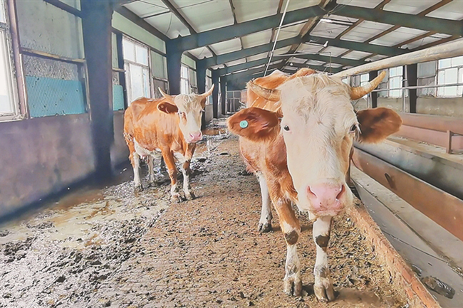 夏日午后的陽光灑在綏化市海倫市原野養(yǎng)牛農(nóng)民專業(yè)合作社整齊的牛舍內(nèi),300頭肉牛正悠閑地站在空地上嚼著美味的飼草。草料間里,合作社理事長王君福正在和工人們一起給肉牛準(zhǔn)備晚餐?!斑@些青貯飼料就是今天肉牛們的晚飯?!蓖蹙V钢厣弦欢汛a放整齊的飼草說。這種飼草叫青貯飼料,是鮮食玉米的秸稈通過青貯技術(shù)加工而成。“這種飼料適口性強,300頭牛一頓就要吃掉2噸多。”王君福說。