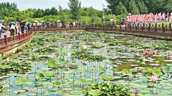 第二十六屆方正蓮花節(jié)開幕當(dāng)天,湖光瀲滟、蓮花盛放的方正湖畔人潮如織,市民和游客一覽千畝蓮花盛開的美景。
