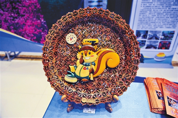 展覽現(xiàn)場,北沉香、核桃作品,賽事吉祥物掛件、木拼畫和版畫等,憑借其精湛的技藝、貼近生活和賽事的文創(chuàng)產(chǎn)品,吸引了眾多參觀者的眼球?!斑@次我們展示了具有小興安嶺特色的木藝品和冰壺、吉祥作品,通過直觀形象的展示,讓更多人了解林區(qū)元素的文創(chuàng)產(chǎn)品和技藝,宣傳和弘揚(yáng)伊春的林區(qū)文化,讓我市的木制工藝品進(jìn)一步發(fā)揚(yáng)光大?!泵澜舅囉邢挢?zé)任公司總經(jīng)理王美江介紹說。