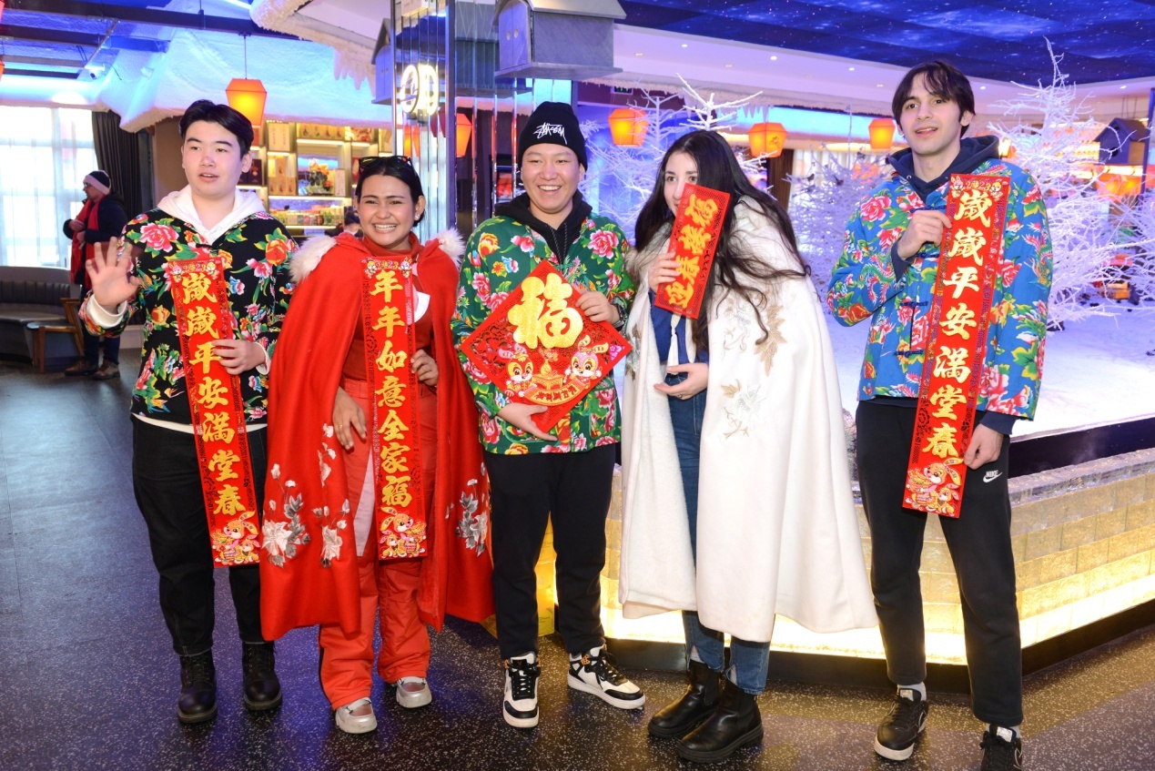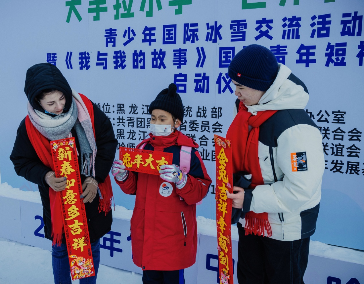 當(dāng)天上午,在雪博會(huì),來(lái)自黑龍江大學(xué)的各國(guó)留學(xué)生代表與中國(guó)青少年結(jié)對(duì)互動(dòng),互贈(zèng)新春禮物,表達(dá)對(duì)即將迎來(lái)的兔年美好祝福。中外青少年小手拉大手,共游太陽(yáng)島雪博會(huì),鯉魚(yú)躍龍門(mén)、圓夢(mèng)啟程、雪冠博覽等雪雕雪景讓大家流連忘返。世界各國(guó)青少年一起雕刻“宇航員”雪雕,送上春聯(lián)祝福語(yǔ),體驗(yàn)了中國(guó)傳統(tǒng)文化和濃濃的年味,表達(dá)了對(duì)世界文化共融的美好祝愿。