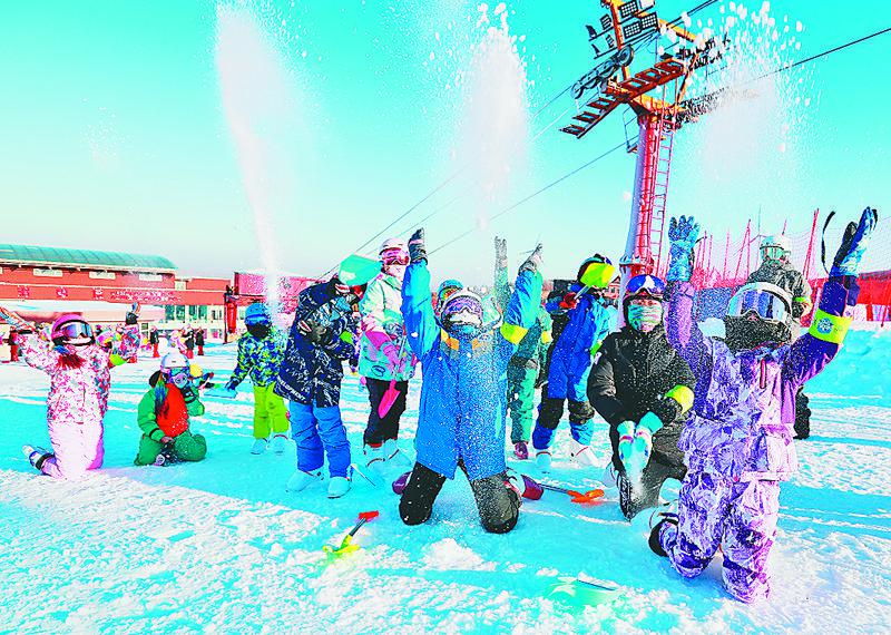 “這里既驚險(xiǎn)又刺激,太讓人上癮了。”來(lái)自外地的李強(qiáng)夫婦是滑雪愛(ài)好者,這次還帶來(lái)了兩歲半的兒子一起滑雪?!皬难┚叻?wù)區(qū)大廳到整體雪道,這次改造升級(jí)變化特別大,并且還推出多種滑雪套餐,我們辦了一張季卡,想帶著小朋友來(lái)培養(yǎng)愛(ài)好,我兒子對(duì)雪地摩托特別感興趣。”