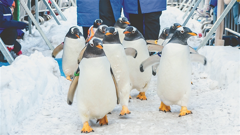 “我們就是專程為‘淘學(xué)企鵝’而來(lái),能在哈爾濱看到全國(guó)僅有的企鵝冰雪巡游,真的不虛此行?!痹缭?年前,上海游客孟蕓就通過(guò)短視頻看到它們背著小書(shū)包打卡黑龍江美景的身影,成為妥妥的“鵝粉”。她說(shuō),為了能在前排近距離觀看,她更是早早就來(lái)到極地廣場(chǎng)等候。哈爾濱極地公園營(yíng)銷(xiāo)部經(jīng)理崔美艷說(shuō),“淘學(xué)企鵝冰雪巡游”自啟動(dòng)以來(lái),每日引萬(wàn)人打卡,成為今冬的爆款網(wǎng)紅活動(dòng),吸引全國(guó)游客來(lái)到哈爾濱看企鵝打卡拍攝,全網(wǎng)曝光量更是在25天的時(shí)間里突破了8.5億。