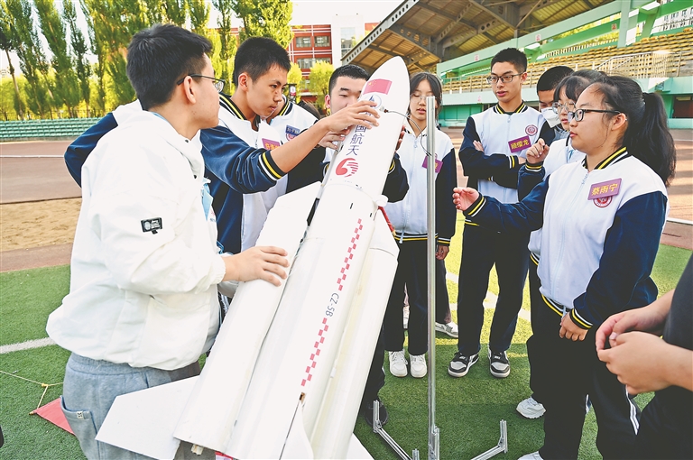 發(fā)射火箭模型。本報記者 荊天旭攝