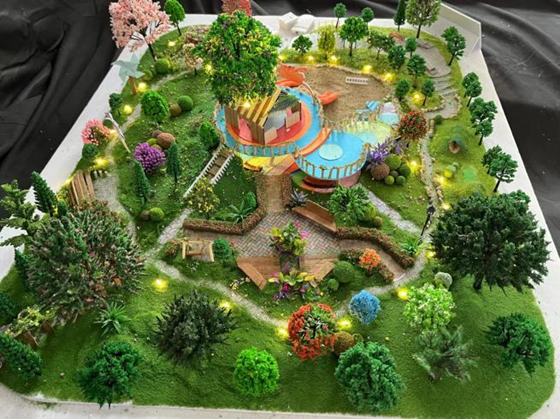作品展指導(dǎo)教師之一王丹告訴記者:“學(xué)生們?cè)O(shè)計(jì)的所有校園環(huán)境景觀模型,都是根據(jù)東北林大校園內(nèi)的實(shí)際地塊結(jié)合周邊情況精心測(cè)繪和調(diào)研后設(shè)計(jì)制作的。通過(guò)此次實(shí)踐課程,使同學(xué)們了解海綿城市、雨水花園、風(fēng)能、太陽(yáng)能等相關(guān)生態(tài)知識(shí),實(shí)現(xiàn)理論與實(shí)踐相結(jié)合,在設(shè)計(jì)過(guò)程積極踐行生態(tài)文明理念,傳承和發(fā)揚(yáng)東林特色與精神?!?