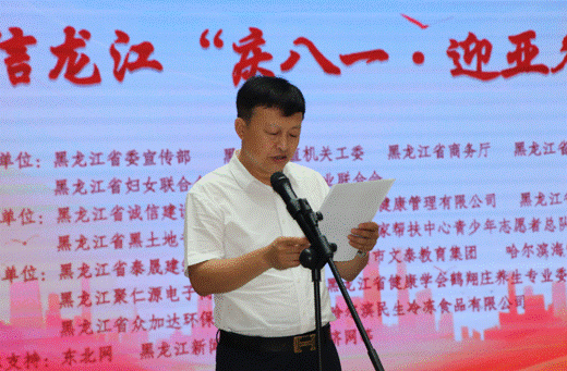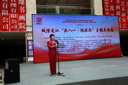 省直機(jī)關(guān)工委行業(yè)協(xié)會(huì)商會(huì)黨建工作部部長(zhǎng)、全省性社會(huì)組織黨委專職副書(shū)記秦曉明致辭。他表示,相信通過(guò)這次活動(dòng)的舉辦,將進(jìn)一步激勵(lì)軍民同心,增強(qiáng)情感認(rèn)同,深化同呼吸、共命運(yùn)、心連心的軍民魚(yú)水情,營(yíng)造擁軍優(yōu)屬、擁政愛(ài)民的濃厚社會(huì)氛圍。同時(shí),以亞冬會(huì)為媒,以書(shū)畫(huà)展為平臺(tái),充分展示文明尚禮、熱情自信的冰城風(fēng)貌,領(lǐng)略龍江深厚的冰雪運(yùn)動(dòng)底蘊(yùn)。