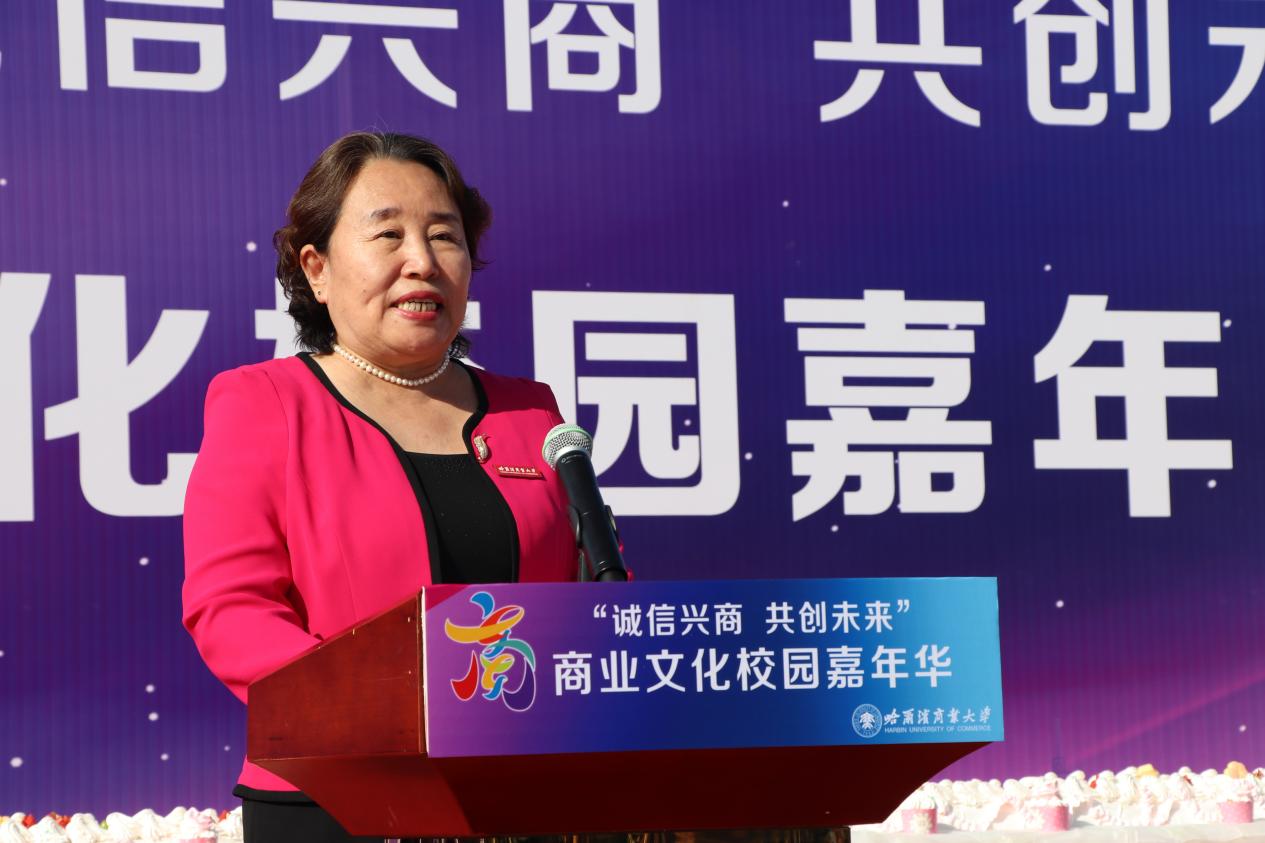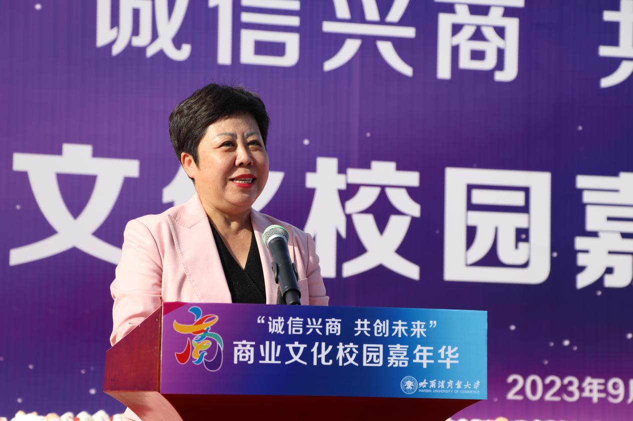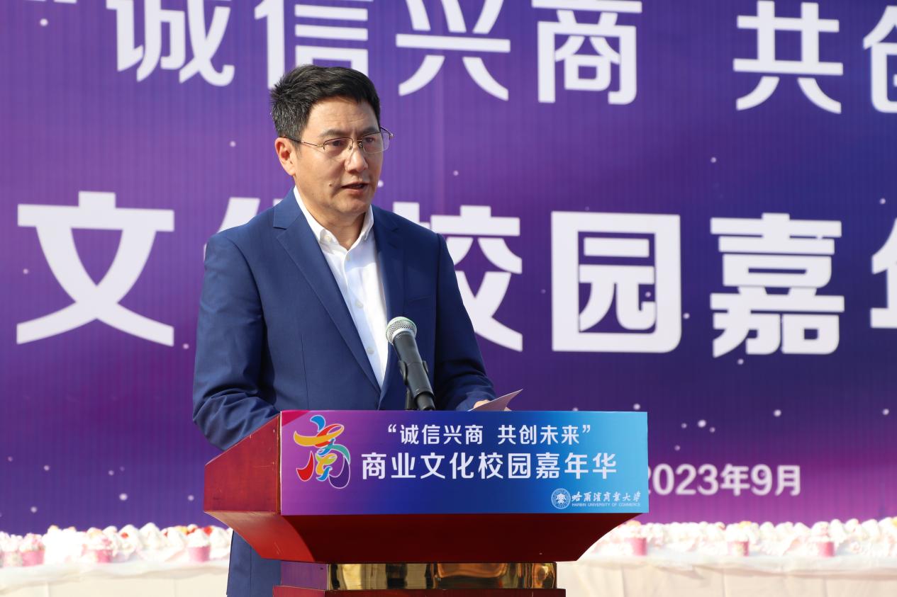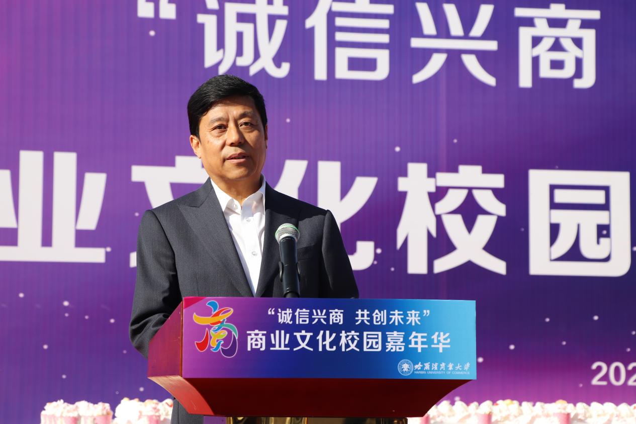 哈爾濱商業(yè)大學黨委書記孫先民致辭。他表示,誠信“軟實力”為高質(zhì)量發(fā)展提供“硬支撐”。本屆“誠信興商·共創(chuàng)未來”商業(yè)文化校園嘉年華活動堅持以文化力量啟智潤心、固本培元,是深入學習貫徹習近平總書記在主持召開新時代推動東北全面振興座談會和視察我省時的重要講話重要指示精神,全面落實立德樹人根本任務的務實舉措。哈爾濱商業(yè)大學作為新中國第一所多科性商業(yè)大學,始終堅持“大商鑄才、大雅育人、商雅兼?zhèn)洹⒔?jīng)世濟民”的育人理念,厚植師生“心懷祖國,至誠奉獻,以商弘業(yè),矢志一流”的大商之道。活動將充分發(fā)揮老字號在文化引領、品牌建設、產(chǎn)業(yè)升級等方面的示范引領作用,彰顯龍江市場主體活力與創(chuàng)新力,聚焦建設“六個龍江”、推進“八個振興”,筑牢堅定龍江文化繁榮發(fā)展的自信根基,進一步凝聚師生扎根龍江、服務龍江、建設龍江的情懷和力量。