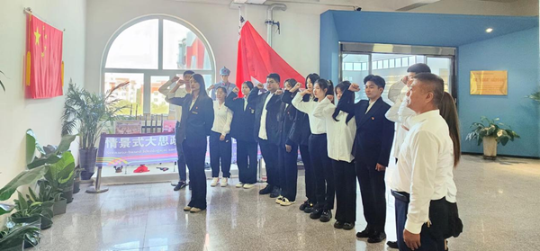 在課程結(jié)束之際,少先隊(duì)員發(fā)出了“勿忘國恥 吾輩自強(qiáng)”的錚錚誓言;黑龍江外國語學(xué)院藝術(shù)系輔導(dǎo)員張博雅帶領(lǐng)在場(chǎng)全體黨員重溫了入黨誓詞。短短的十二句話,道出了中國共產(chǎn)黨的百年奮斗歷程,凝聚著每一名黨員不忘初心、堅(jiān)守理想的信念與力量。面對(duì)黨旗,全體黨員莊嚴(yán)地舉起右拳宣誓,表達(dá)了矢志不渝跟黨走的決心和勇?lián)姑?、不?fù)黨恩的堅(jiān)定信念。