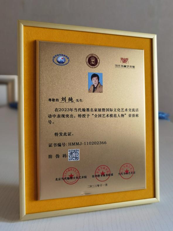 黑龍江經(jīng)濟網(wǎng)訊(記者王振紅 文/攝)日前,由北京當(dāng)代翰墨文化藝術(shù)院主辦的全國第五屆當(dāng)代翰墨名家展頒獎盛典在北京圓滿結(jié)束。應(yīng)巴基斯坦駐華大使館邀請,與會藝術(shù)家參加了中巴文化藝術(shù)交流并贈送書畫作品。龍江著名美術(shù)家劉純獲大賽一等獎,被主辦單位與駐華使節(jié)商務(wù)聯(lián)盟(ECCAC)共同授予“全國藝術(shù)模范人物”榮譽稱號和中外國際文化交流大使。