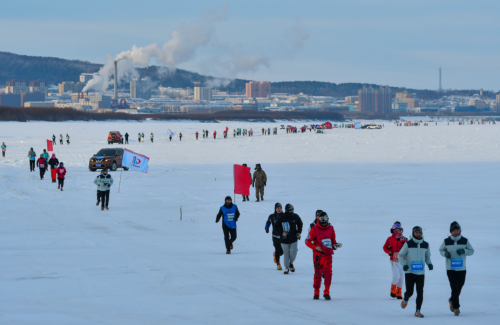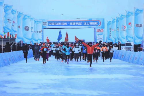 中國東極(撫遠·黑瞎子島)冰上馬拉松賽已經(jīng)連續(xù)五屆在撫遠市舉辦,憑借地域唯一性和極限挑戰(zhàn)性,成為全球五大冰上馬拉松之一,開創(chuàng)中國極限冰雪馬拉松運動的先河。本屆賽事由黑龍江省體育局、佳木斯市人民政府主辦,省政府黑瞎子島建設(shè)和管理委員會、撫遠市人民政府承辦。中國奧委會副主席、中田協(xié)名譽主席段世杰前往比賽開幕式鳴槍。賽事設(shè)有全程馬拉松、半程馬拉松、新年歡樂跑三個項目。清晨7點,撫遠市的氣溫達到了零下23.3攝氏度,選手們紛紛帶上防風(fēng)面罩、保暖帽、手套、太陽鏡、防滑冰爪等應(yīng)對極端嚴寒環(huán)境下的特殊裝備,在全程42.195公里的冰賽道上,徒步穿越冰雪世界,體驗當?shù)鬲毺乇┪幕兔袼罪L(fēng)情,品嘗賽道補給站提供的熱氣騰騰的鱘鰉魚鍋、鮮鯽魚湯等地方特色補給品,補充能量抵御嚴寒。