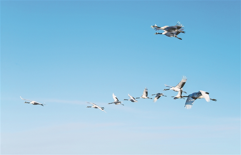 候鳥成隊(duì)飛翔在林區(qū)上空。圖片由受訪單位提供