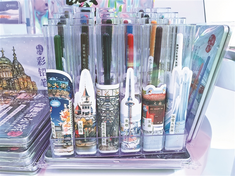 走進(jìn)哈爾濱展位,文創(chuàng)氣息撲面而來。在眾多文創(chuàng)產(chǎn)品中,一支看似普通的彩色鉛筆在NFC技術(shù)的加持下,可以帶著大家暢游“爾濱”,很是神奇。