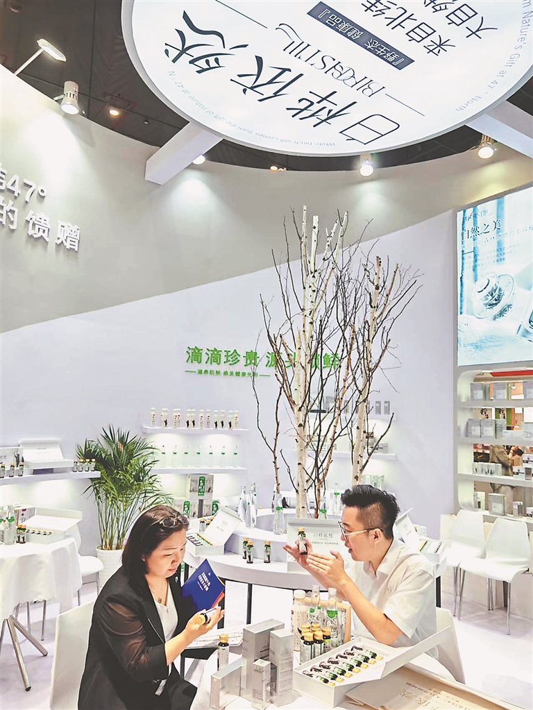 “產(chǎn)品所用的白樺汁原料源自鐵力市,這里處在北緯47°小興安嶺的黑土地上。”黑龍江雨曉科技有限公司總經(jīng)理馬光西介紹,公司充分利用龍江“九珍十八品”資源,由雨曉集團與清華大學深圳科研團隊合作,運用先進技術(shù)開發(fā)提煉出白樺汁精華,為消費者不斷提供囗感獨特的綠色飲品、化妝品?,F(xiàn)在企業(yè)庫存清空,鐵力工廠正加班加點生產(chǎn)。本次展會的火爆出圈,讓企業(yè)對白樺汁系列產(chǎn)品走向世界市場更加充滿信心。
