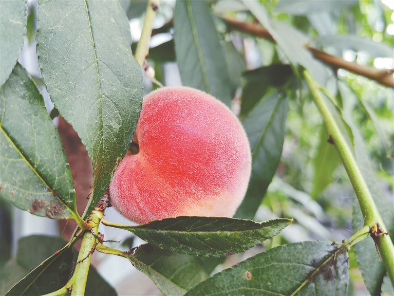 6月18日,在北大荒集團寧安農(nóng)場有限公司鄉(xiāng)村振興產(chǎn)業(yè)園南果北種示范種植基地,一棵棵傲然挺立的桃樹上綴滿的毛桃粉中透紅、果香四溢、成熟待采。
