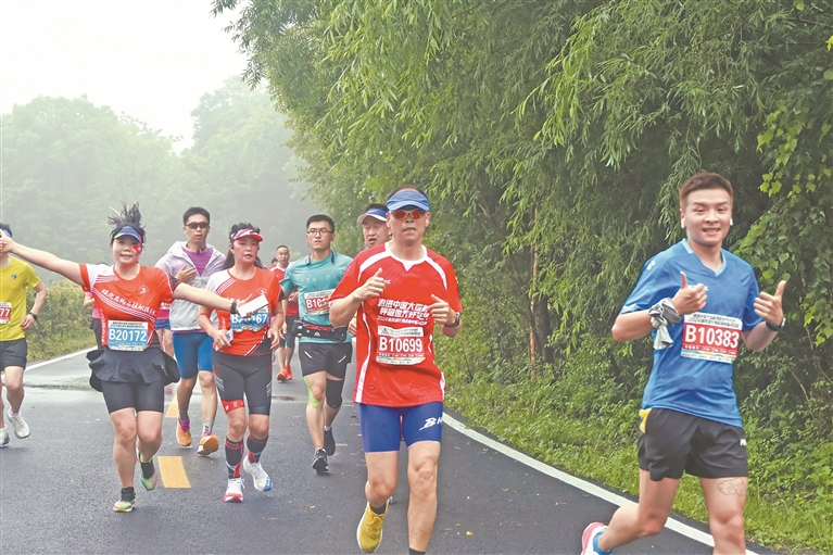 隨著發(fā)令槍響,7380名選手陸續(xù)沖出起跑線,從老山門出發(fā),途經(jīng)神龜石、月牙湖、長壽泉、丞相峰,遠(yuǎn)眺南極仙翁,沿途領(lǐng)略北國森林的壯美風(fēng)光,碧樹藍(lán)天相映成趣,盡顯生態(tài)魅力。賽道上,有沖鋒在前的資深跑者,有不甘落后的新人跑者,更有“以跑為樂”運動團(tuán)體,以鏗鏘步履跑出一道道靚麗風(fēng)景線。