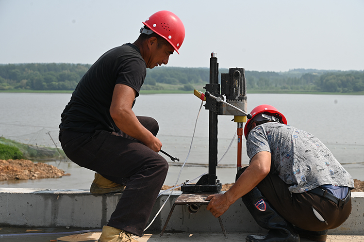在引龍河農(nóng)場(chǎng)有限公司青年水庫(kù)除險(xiǎn)加固工程施工現(xiàn)場(chǎng),機(jī)器轟鳴,施工現(xiàn)場(chǎng)對(duì)大壩固腳及安全圍欄施工作業(yè),增強(qiáng)壩基防滲能力,消除大壩防洪隱患。同時(shí)與施工、設(shè)計(jì)部門一同研究,采用增設(shè)防滲膜圍堰措施,加快施工進(jìn)度,制定了趕工計(jì)劃,倒排工期,確保汛限水位以下部分在主汛期來(lái)臨前全部完成。此外,現(xiàn)場(chǎng)還有督導(dǎo)組對(duì)水庫(kù)除險(xiǎn)加固工程進(jìn)行檢查。