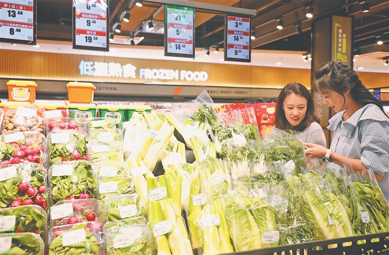 9月9日,消費(fèi)者在山東省東營(yíng)市一家商超選購(gòu)商品。新華社發(fā)