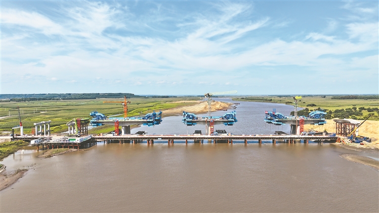圖為建設中的呼蘭河特大橋。本報記者 吳利紅攝