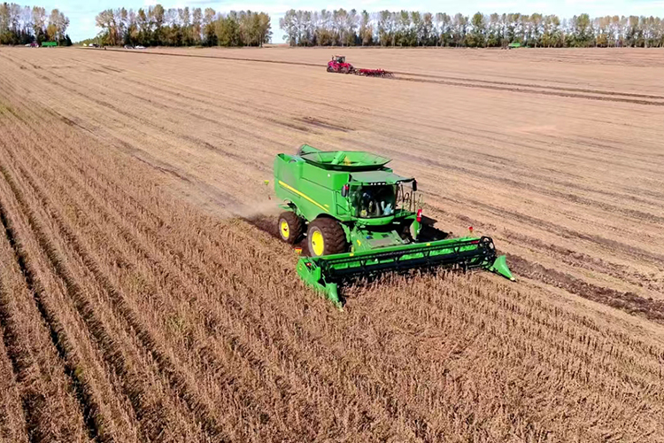 也正如老李說的,糧食豐產(chǎn)豐收,離不開農(nóng)業(yè)的科技支撐。在取得2023年全國農(nóng)墾提單產(chǎn)“大比武”優(yōu)勝農(nóng)場(chǎng)的基礎(chǔ)上,引龍河農(nóng)場(chǎng)有限公司黨委按照省委農(nóng)村工作會(huì)議、北大荒集團(tuán)、北安分公司備春耕生產(chǎn)工作推進(jìn)會(huì)議精神,以振興中國大豆產(chǎn)業(yè)為己任,落實(shí)落靠“穩(wěn)糧擴(kuò)豆”任務(wù),將大豆大面積單產(chǎn)提升作為農(nóng)業(yè)生產(chǎn)的主攻方向。2024年,這個(gè)農(nóng)場(chǎng)大豆一年“重茬”面積5.7萬畝,占大豆播種面積的18.23%;兩年“重茬”面積6.9萬畝,占大豆播種面積的21.91%;兩年以上“重茬”面積9.2萬畝,占大豆播種面積的29.22%。為更加有效應(yīng)對(duì)大豆重茬,農(nóng)場(chǎng)通過應(yīng)用重茬大豆提單產(chǎn)的各項(xiàng)措施,例如底肥增施生物有機(jī)肥和微生物菌肥,花期噴施大量元素水溶肥和微生物菌劑,大豆的產(chǎn)量有了非常明顯的提升,成熟度非常好,而且百粒重提高了1.5克,單數(shù)平均增加了1.9個(gè)莢數(shù)和3.48個(gè)粒數(shù)。與此同時(shí),還以深松為重點(diǎn),結(jié)合翻、耙、旋、起、壓等措施,提高整地質(zhì)量,打破板結(jié)層,增加土壤透氣性,奠定大豆播種基礎(chǔ),為大豆萌發(fā)和根系生長創(chuàng)造良好的土壤條件,并選擇土壤有機(jī)質(zhì)含量高地塊種植“重茬”大豆。合理安排大豆播種順序,先播種正茬大豆,待溫度回暖后再播“重茬”大豆,避免低溫冷量“重茬”病害的疊加。