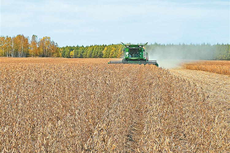 大豆收獲現(xiàn)場(chǎng)。張宏 郝愛琦攝
