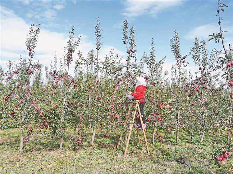 “我們的這個(gè)果子,從樹上摘下來(lái)擦一擦就可以吃,沒有一點(diǎn)化肥農(nóng)藥?!奔易∩兄炬?zhèn)到果園打工的村民張素春說(shuō)。