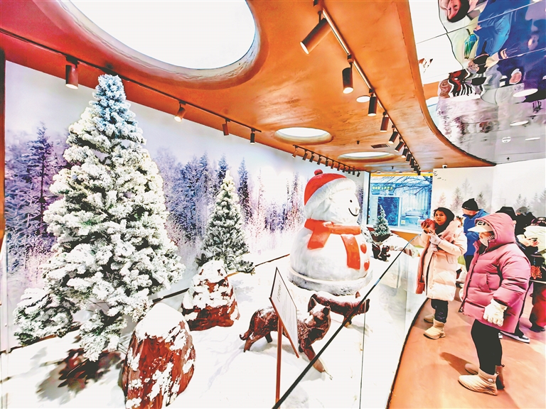 5日,哈爾濱市道里區(qū)中央大街上的巧克力博物館內,許多游客在打卡拍照。走進館內,便可以聞到一股濃濃的巧克力香味。