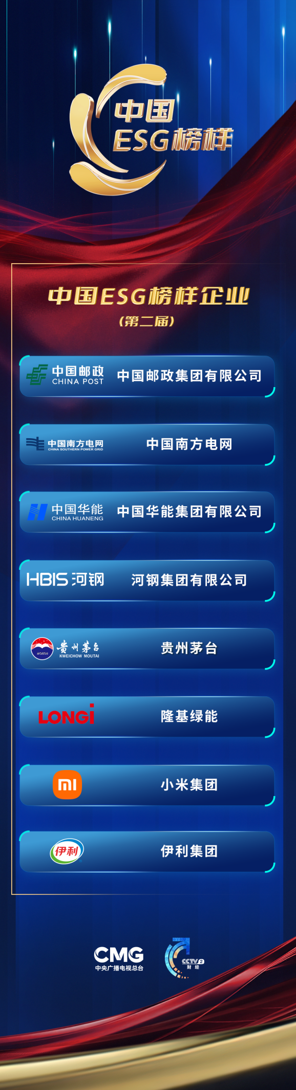 當天,中央廣播電視總臺財經(jīng)節(jié)目中心聯(lián)合國務院國資委、全國工商聯(lián)、中國社科院國有經(jīng)濟智庫、中國企業(yè)改革與發(fā)展研究會等權威機構舉辦了《第二屆“ESG榜樣”盛典》,這8家企業(yè)均成功登榜“ESG榜樣企業(yè)”,成為ESG領域的新領軍者。