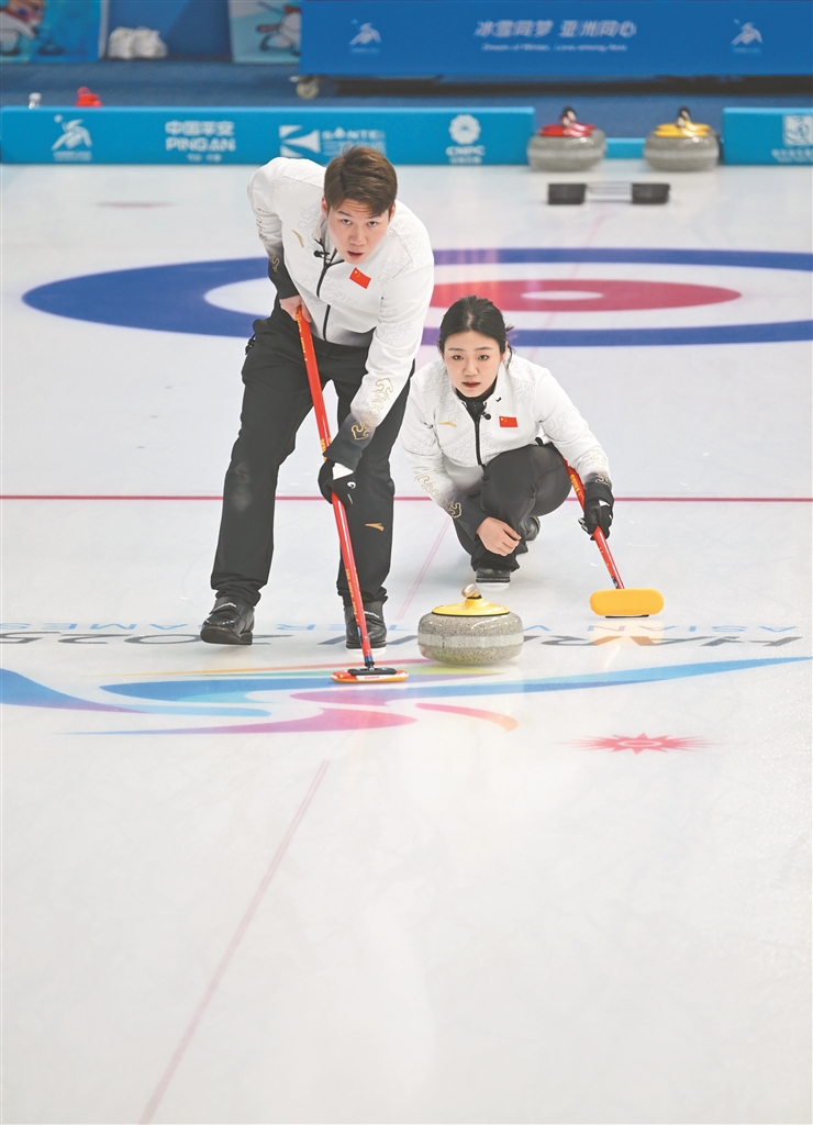 本報(bào)6日訊(記者王志強(qiáng))6日,在冰壺混雙循環(huán)賽最后一輪比賽中,中國(guó)隊(duì)王智宇/韓雨組合以10比1大比分戰(zhàn)勝卡塔爾隊(duì),以戰(zhàn)績(jī)排名小組第一,率先進(jìn)入半決賽。