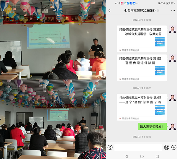 在此次打擊“代理退保”宣傳活動中,七臺河中支利用微信工作群、微信朋友圈轉(zhuǎn)發(fā)宣傳內(nèi)容,詳細(xì)剖析了黑灰產(chǎn)的常見運(yùn)作模式,非法“代理退?!笨赡芙o消費(fèi)者帶來的四方面風(fēng)險:一是資金受損風(fēng)險;二是喪失正常保險保障的風(fēng)險;三是個人信息泄漏風(fēng)險;四是相關(guān)行為可能導(dǎo)致消費(fèi)者面臨訴訟等法律風(fēng)險。號召廣大群眾增強(qiáng)風(fēng)險防范意識,警惕非法“代理退?!碧茁?。