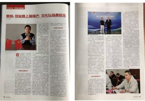 近日,我省籍企業(yè)家袁帥個人專訪《袁帥:創(chuàng)業(yè)路上展鋒芒,文化弘揚勇?lián)敗窐s登知名雜志《中華英才》。