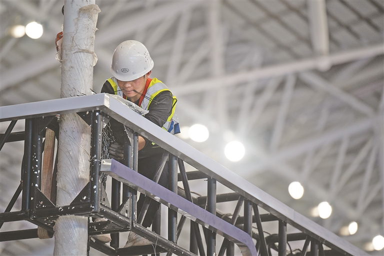 5月14日,距離哈洽會開幕還有三天時間,記者來到第34屆哈洽會展館施工現(xiàn)場,各區(qū)域展臺已搭建成型,施工工人們正在有條不紊地裝飾展區(qū)細節(jié)部分。
