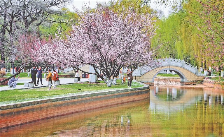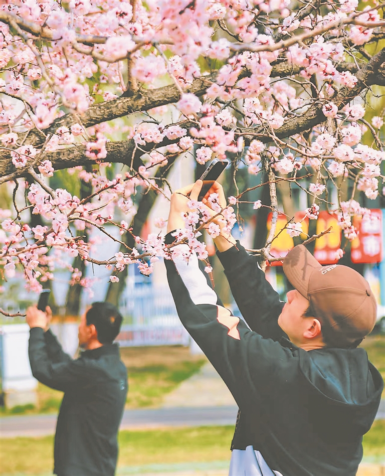 走進(jìn)杏林壇,仿若踏入仙境。杏花在枝頭隨風(fēng)輕舞,宛如仙子般婀娜多姿。淡雅的花香彌漫四周,令人陶醉不已,吸引眾多市民前來賞花、拍照。