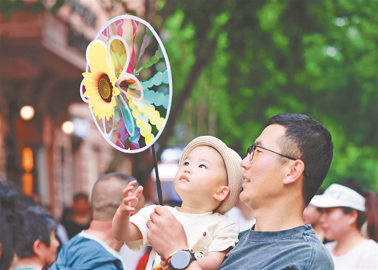 5月30日晚,端午前夜,市民、游客從四面八方匯聚到哈爾濱市中央大街,奔向松花江畔踏青、游玩。