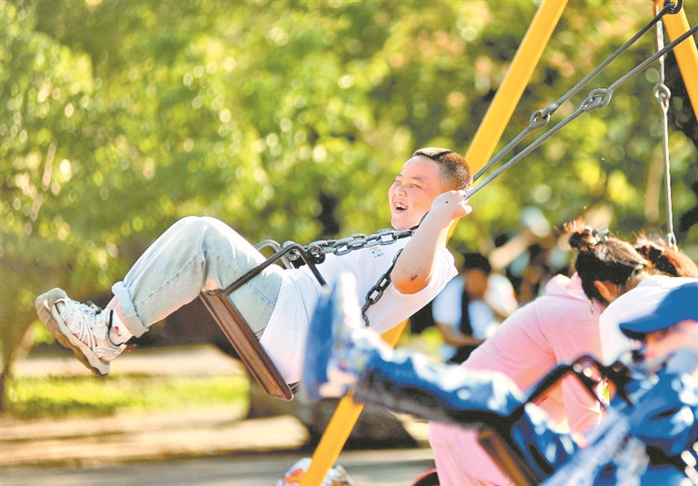 1日,哈爾濱市兒童公園內(nèi),孩子們坐小火車、滑滑梯、騎自行車、放小飛機(jī)、蕩秋千、玩蹺蹺板,快樂(lè)地度過(guò)自己的節(jié)日。