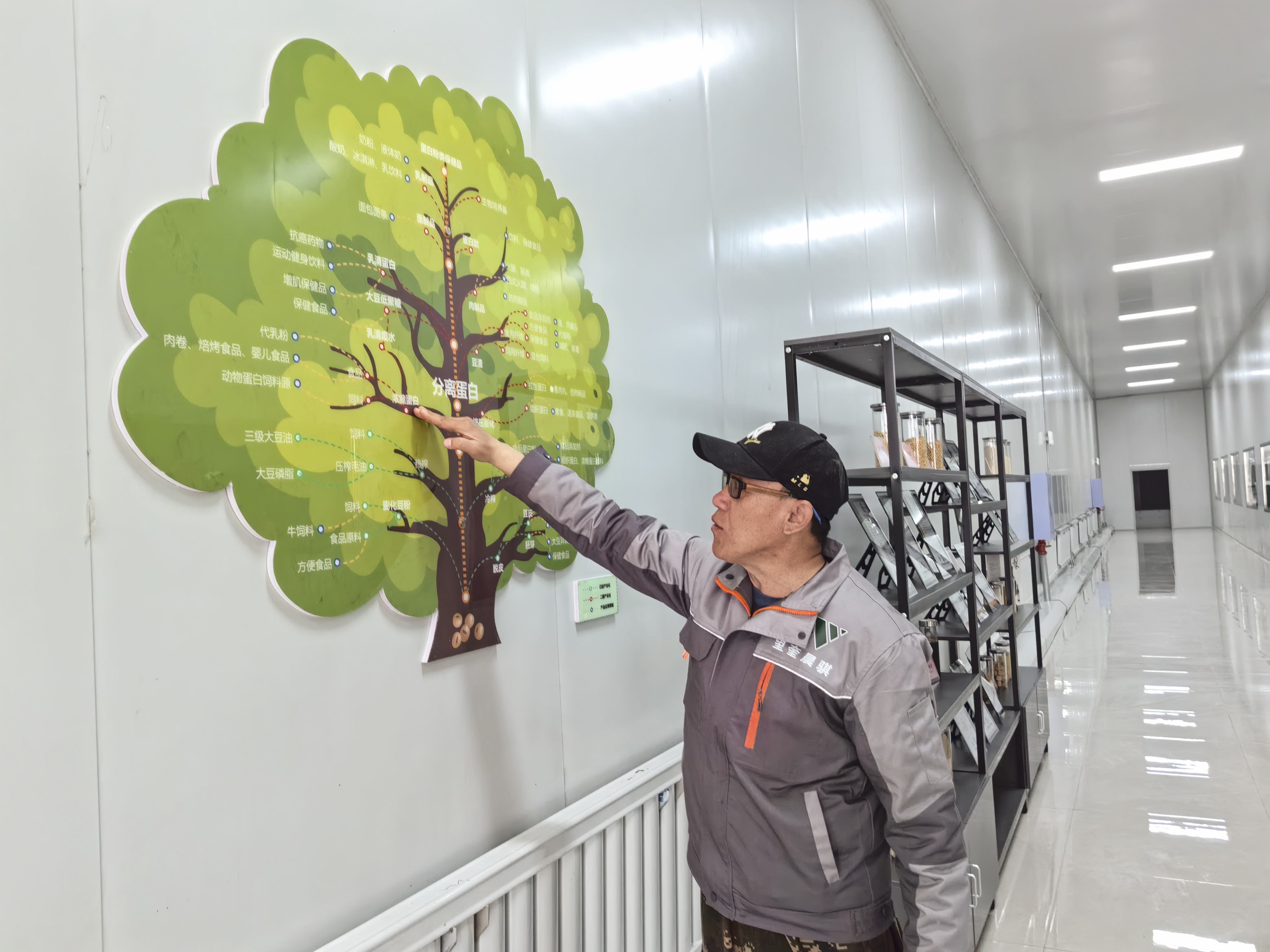 在成品車(chē)間,記者看到一張“樹(shù)狀圖”,清晰展示著大豆深加工的產(chǎn)業(yè)圖譜,藍(lán)色圓圈代表產(chǎn)品應(yīng)用領(lǐng)域,綠色圓圈代表已經(jīng)實(shí)現(xiàn)產(chǎn)業(yè)化的領(lǐng)域,紅色圓圈則代表二期即將上馬的加工項(xiàng)目。從“樹(shù)狀圖”上,可見(jiàn)晨騏農(nóng)業(yè)強(qiáng)勁發(fā)展的勢(shì)頭。