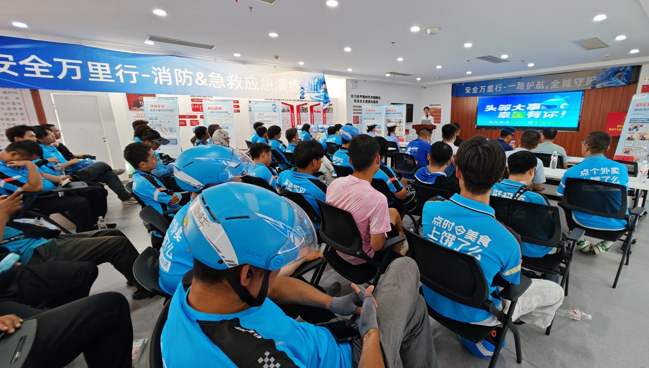 騎手既是安全出行的參與者,也是城市生活的守護(hù)者。當(dāng)天,北京市公安局公安交通管理局朝陽交通支隊(duì)、北京市朝陽區(qū)消防救援支隊(duì)舉行了安全知識講座,餓了么還為騎手進(jìn)行了應(yīng)急救援培訓(xùn)。