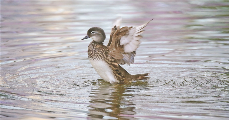 在兆麟公園的鴛鴦湖中,還生活著70只在城區(qū)其他地方出生后,自己跑來或是被愛心市民送來的小鴛鴦。如今,276只小家伙跟著媽媽在湖中四處游蕩、覓食,吸引不少外地游客駐足圍觀。