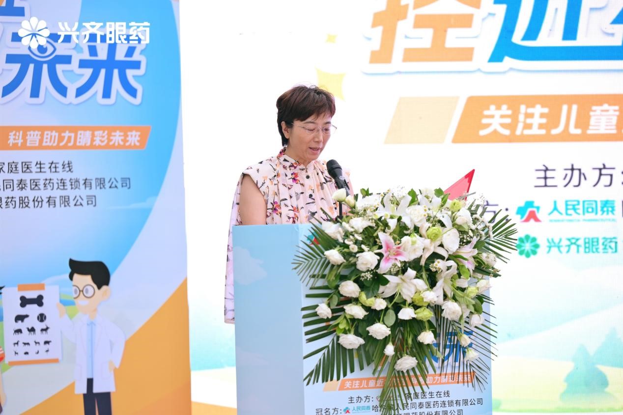 哈爾濱人民同泰醫(yī)藥連鎖有限公司副總經(jīng)理柴靜榮在致辭中直面近視低齡化、重度化挑戰(zhàn),強調(diào)企業(yè)踐行“打造卓越品牌、致力大眾健康”使命的責(zé)任擔(dān)當(dāng)。依托全省350余家社區(qū)門店網(wǎng)絡(luò)及線上線下一體化平臺,全力支持公益視力檢測、科普講座等行動,并發(fā)揮執(zhí)業(yè)藥師團隊專業(yè)力量,使科學(xué)近視防控理念精準觸達家庭場景。