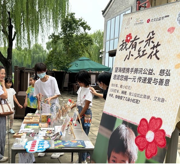 北京慈弘慈善基金會(huì)在后海望海樓舉辦“小紅花公益市集”,通過(guò)義賣來(lái)支持鄉(xiāng)村學(xué)校圖書角建設(shè),受到市民和游客們的歡迎