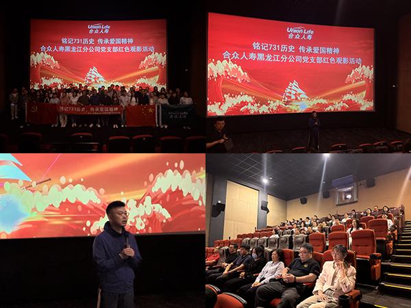 為深切緬懷革命先輩,大力弘揚(yáng)愛國主義精神,進(jìn)一步增強(qiáng)全體人員的歷史責(zé)任感與崗位擔(dān)當(dāng)意識,合眾人壽黑龍江分公司黨支部組織開展“銘記731歷史,傳承愛國精神”紅色觀影活動。在黨支部書記的帶領(lǐng)下,分公司黨員、入黨積極分子、內(nèi)勤全體員工及個險/銀保/收展渠道外勤黨員共同參與,通過觀看歷史題材影片《731》,重溫那段刻骨銘心的歷史。