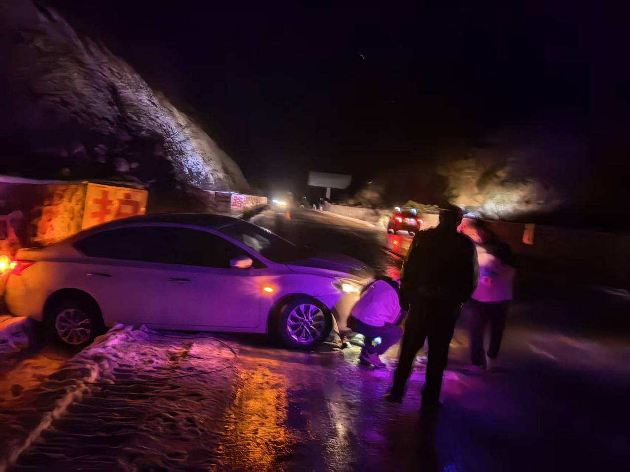 了解情況后,民警立即找來了皮卡車用拖車繩反復(fù)嘗試拖拽,經(jīng)過一個小時的拖救,成功將受困車輛成功拖拽到主路。由于天色漸晚,民警建議游客到前方縣內(nèi)進行休息調(diào)整。隨后,民警仔細檢查了車輛的輪胎、剎車等關(guān)鍵部位,確認車輛無故障后,還耐心向游客講解了 G331 國道夜間行車的注意事項,包括提前查看天氣、控制車速、保持車距以及遇到突發(fā)情況如何正確求助等。