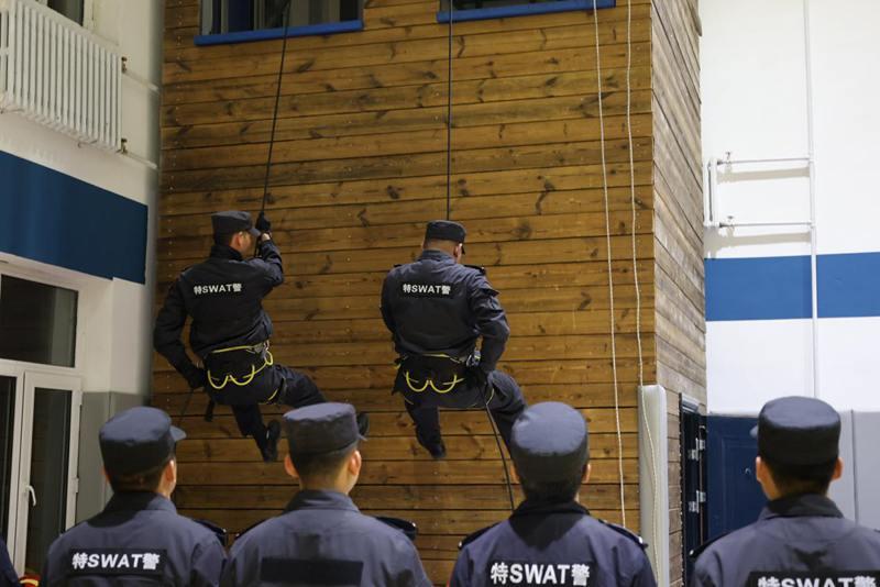 嚴(yán)苛訓(xùn)練礪精兵,汗水鑄就戰(zhàn)斗力。在戰(zhàn)術(shù)訓(xùn)練現(xiàn)場,隨著指揮員一聲令下,隊員們迅速結(jié)成戰(zhàn)斗小組,交替掩護(hù)、快速推進(jìn),動作連貫流暢。在徒手防控科目中,隊員們反復(fù)練習(xí)擒敵拳、控制術(shù)等技能,每一個動作都追求標(biāo)準(zhǔn)規(guī)范。此外,針對冬季邊境地區(qū)夜長晝短,反恐與巡特警大隊還專門開展夜間訓(xùn)練,隊員們在夜間環(huán)境中搭建臨時帳篷并展開夜間搜索,進(jìn)一步提升了夜間的應(yīng)急處突能力。