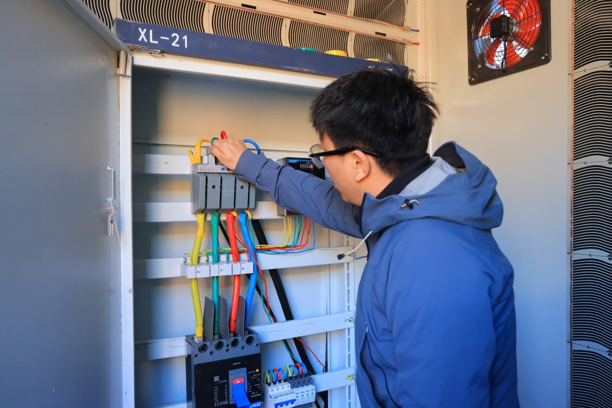 “這是一套完全獨立的孤島型微電網(wǎng),它不與大電網(wǎng)相連,通過自主發(fā)電與儲能實現(xiàn)供電。我們配置了150千瓦光伏陣列、兩臺10千瓦風(fēng)力發(fā)電機(jī)組,并配套低溫適配型儲能電池及保溫系統(tǒng),同時搭載了協(xié)調(diào)運(yùn)行與能量管理系統(tǒng),可實現(xiàn)24小時連續(xù)、穩(wěn)定供電?!惫枮I工業(yè)大學(xué)電氣工程及自動化學(xué)院博士研究生周洋介紹。