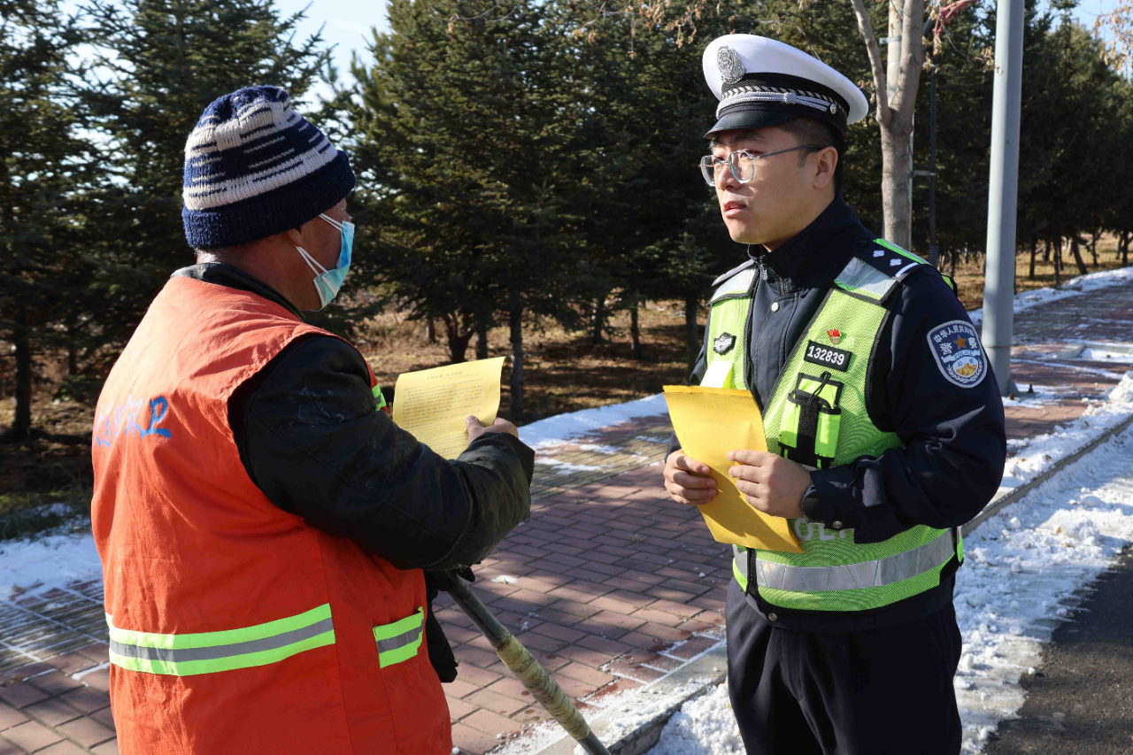 同時(shí),通過(guò)粘貼海報(bào)、發(fā)放宣傳資料及宣傳品等形式,用通俗易懂的語(yǔ)言向環(huán)衛(wèi)工人講解酒駕醉駕、闖紅燈、逆向行駛、隨意停車、隨意橫穿馬路、不走人行道和斑馬線及不戴安全頭盔等交通違法行為帶來(lái)的嚴(yán)重危害及冬季安全出行注意事項(xiàng),要求廣大環(huán)衛(wèi)工人務(wù)必要提高思想認(rèn)識(shí),牢固樹立“交通安全無(wú)小事”的責(zé)任意識(shí),在作業(yè)時(shí)務(wù)必穿戴反光衣,攜帶反光標(biāo)識(shí)牌,嚴(yán)格落實(shí)安全防護(hù)措施,克服麻痹大意思想,時(shí)刻繃緊安全弦,不斷增強(qiáng)自我保護(hù)意識(shí),最大限度預(yù)防和減少道路交通事故發(fā)生。