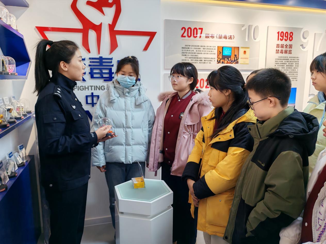 活動中,在基地講解員的引導(dǎo)下,師生們在中國禁毒史展區(qū),虎門銷煙的歷史場景、近代禁毒斗爭通過圖文形式生動呈現(xiàn),講解員講述的禁毒先輩故事,讓師生們深刻感悟到禁毒工作的歷史厚重與現(xiàn)實意義。在仿真毒品展示區(qū),講解員詳細(xì)介紹了傳統(tǒng)毒品、合成毒品及新型毒品的種類、特性與識別技巧,破解了“看似無害實則致命”的毒魔偽裝,幫助師生們練就辨別毒品的“火眼金睛”。