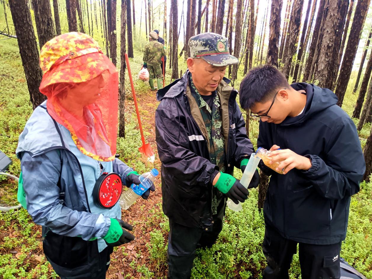 東北林業(yè)大學(xué)團(tuán)隊(duì)在長(zhǎng)山林場(chǎng)野生松茸保護(hù)促繁基地,人工繁育野生松茸(王力 攝)