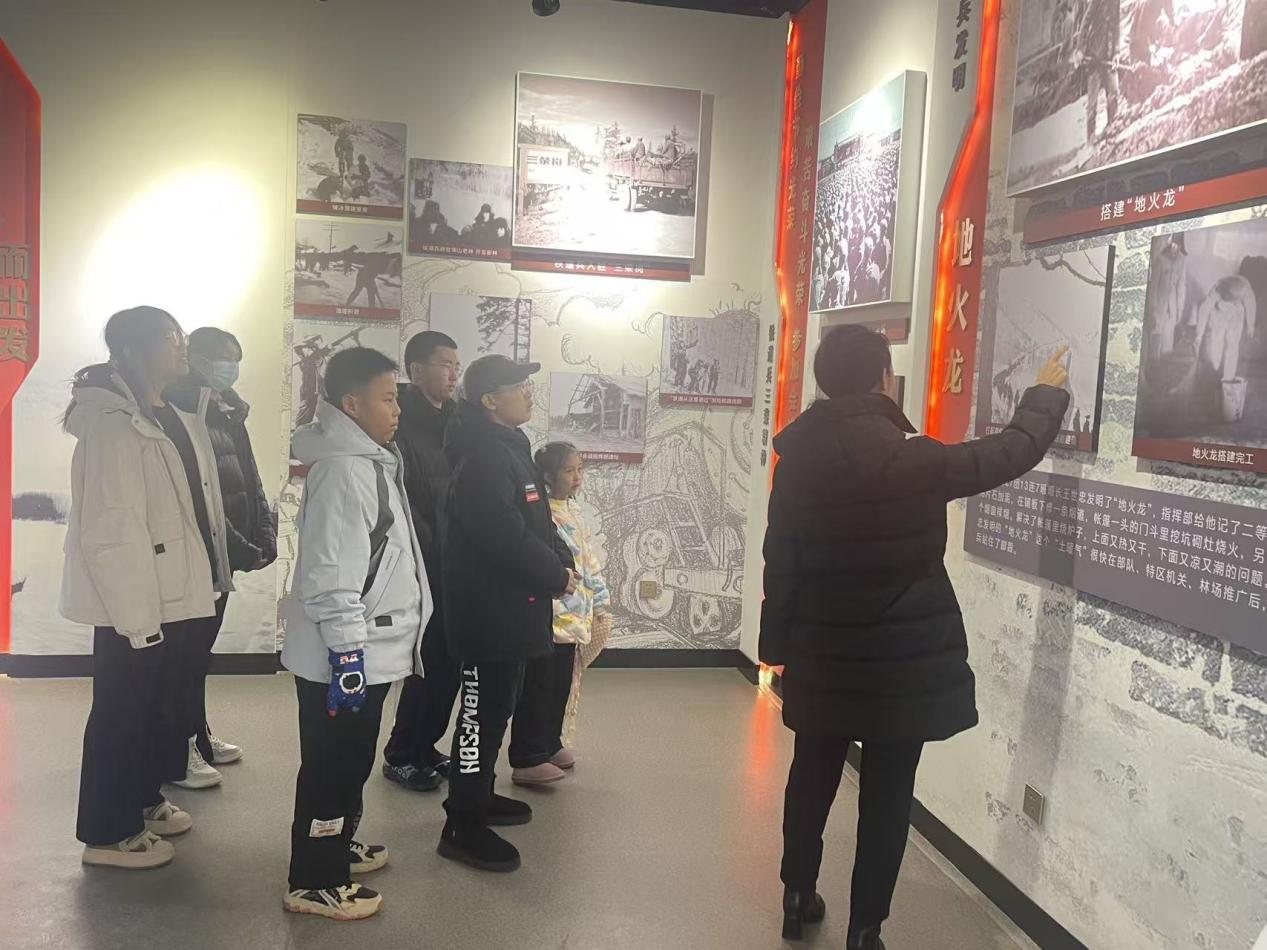 工作人員在為職工子女講解新林開(kāi)發(fā)建設(shè)的奮斗歷程(宗海燕 攝)