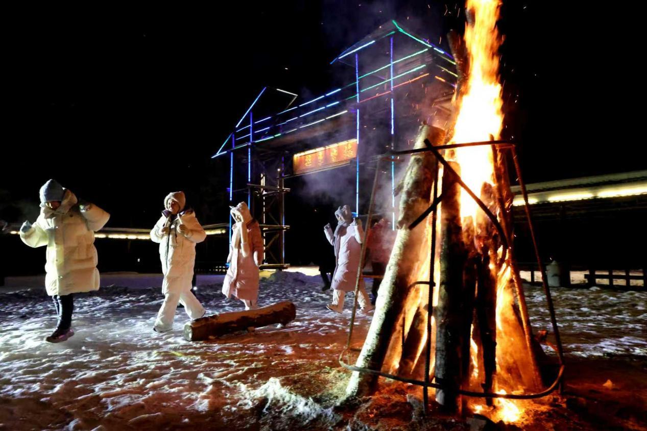 為讓游客盡情解鎖冰雪玩法,阿木爾林業(yè)局在龍河驛站專門設置篝火區(qū),當熊熊篝火燃起,大家圍著篝火載歌載舞,盡情沉醉在冰雪帶來的野趣與浪漫之中?!斑@潔白無瑕、晶瑩剔透的冰雪,是我們南方人從未見過的美景,太有吸引力了!”來自河南焦作的游客劉永甜興奮地說。龍河驛站還精心推出地道東北風味餐飲,排骨燉豆角、烤全羊等特色佳肴分量十足、香氣撲鼻,讓每一位游客大快朵頤、口齒留香。